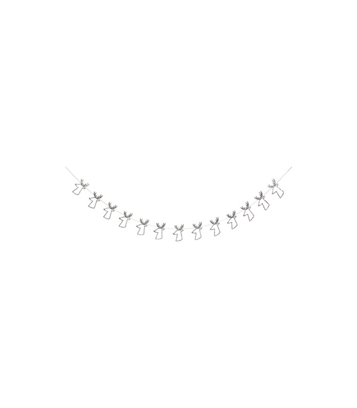 A beautiful garland that will add sparkle and joy to your party with its row of silver reindeer with silver glitter hanging on a silver wire. A really elegant effect ! Add sparkle to your Christmas decor with this gorgeous glittery garland. Featuring shimmering reindeer and silver thread, for a really stylish look.
