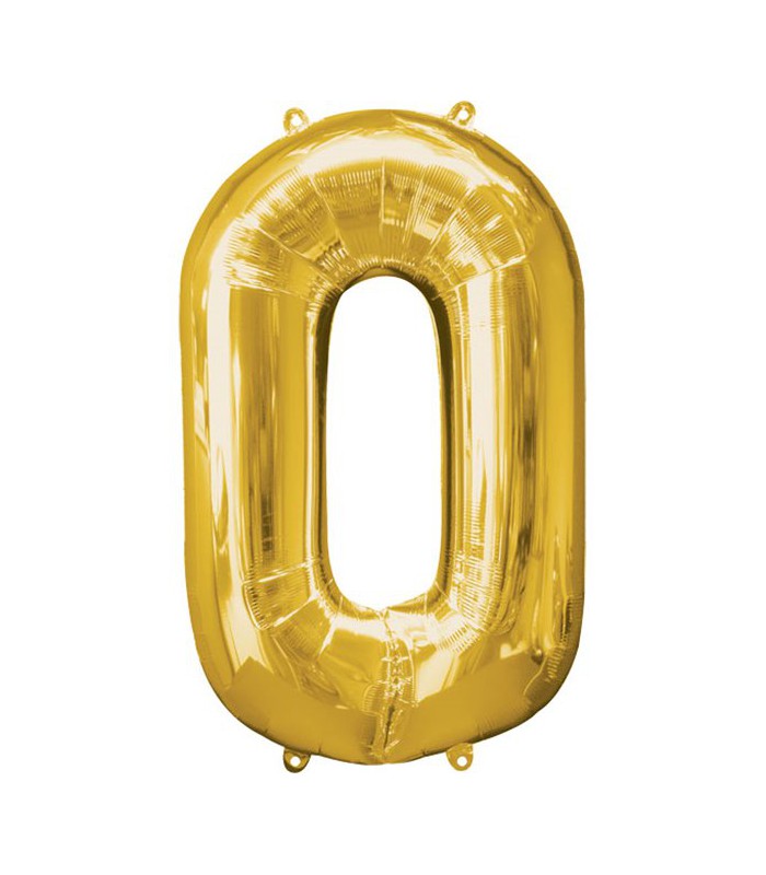 Golden "Super Shape" metallic Mylar balloon that will decorate and indicate with style the number 0!