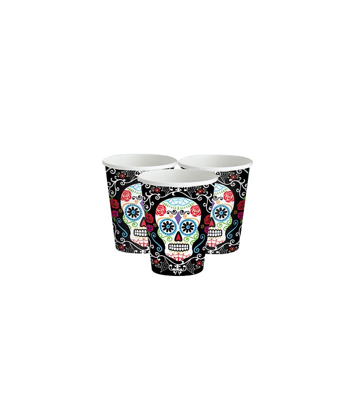 Flowered cups with a skull on the black background for a stylished Halloween effect !