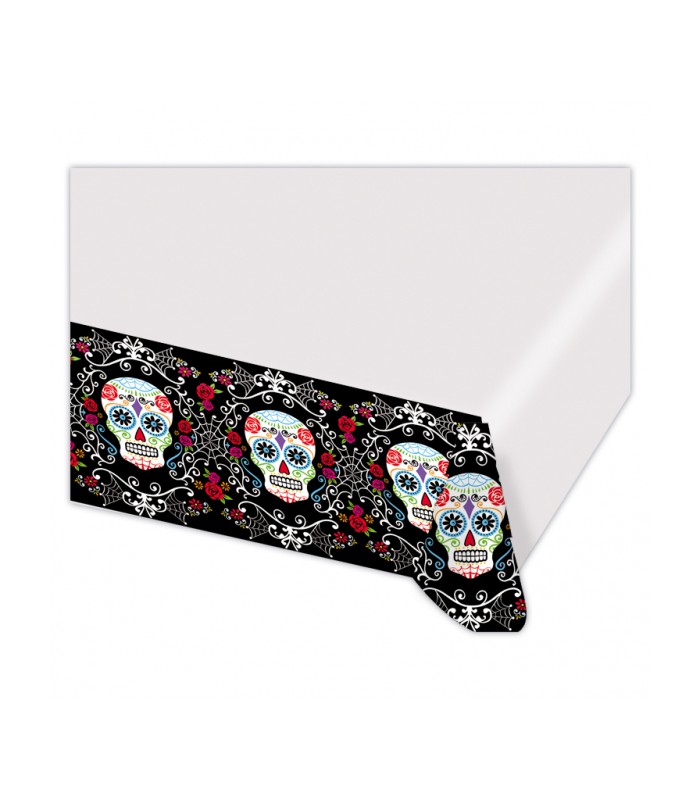 This Dia de los Muertos "Sugar Skull" Table Cover will bring your celebration to life !