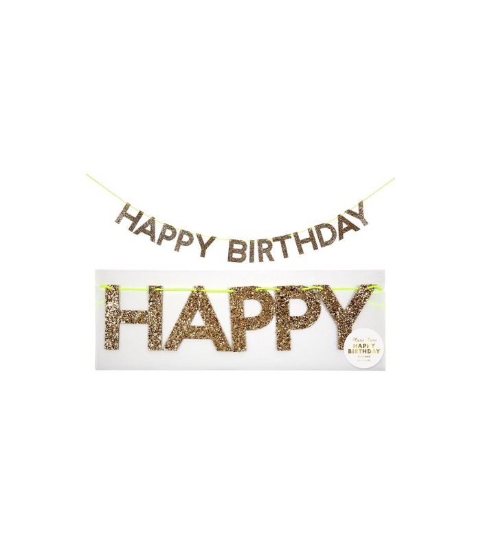 Celebrate in glam style with this gold glitter Happy Birthday garland. A chic way to make your party sparkle!