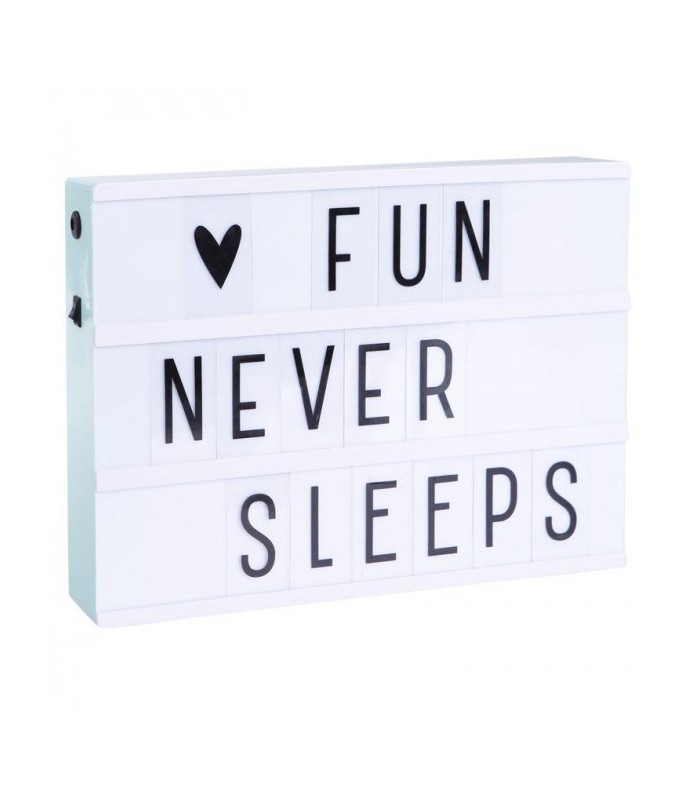 Handy "must have" A5 lightbox with two rows for all your little quotes and sweet messages! Very decorative as a light but also so much fun to do. Change your messages as often as you like by simply sliding the plastic letters on and off the box. Mix and match all the enclosed letters and symbols (85 pieces!) as often as you want. The lightbox can stand and can be used hanging on the wall. Original deco not only for the livingroom and kidsroom but also for parties, births and weddings. Make up your quote or message and slide the letters on… over and over again! TIP: Make your lightbox extra unique with our Little Lovely number and symbol sets. Separately available.