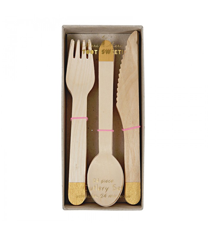 24 Wooden Cutlery Silver Meri Meri
