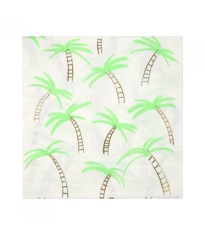 Feel the tropical sun with these stylish party napkins. They are decorated with a palm tree pattern embellished with shiny gold foil.
