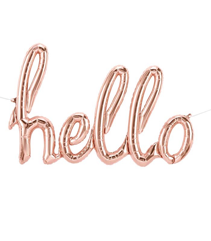 One word says it all! Hello! One word. One balloon. Make a statement with this gorgeous "Hello" script mylar balloon in rose gold. It will add a touch of pop and fun to your deco!