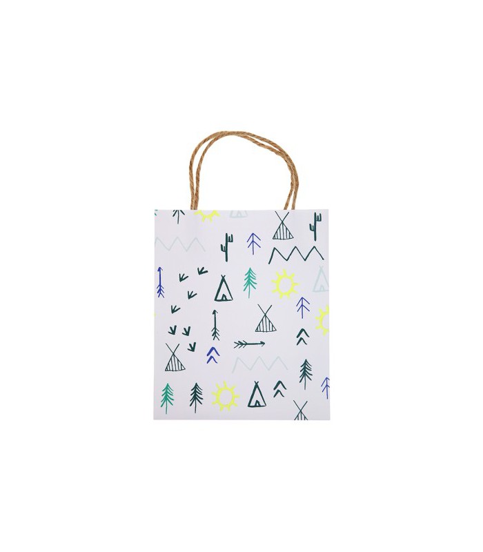 Send your young adventurer partygoes home with one of these delightful party bags decorated with forest campground patterns and finished with natural hemp cord handles.