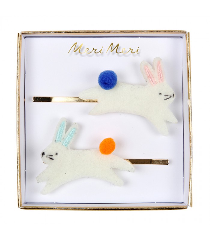 These cute bunny hair pins are crafted with felt with embroidered stitching details finished with a colorful pom-pom. They make also a perfect Easter present !