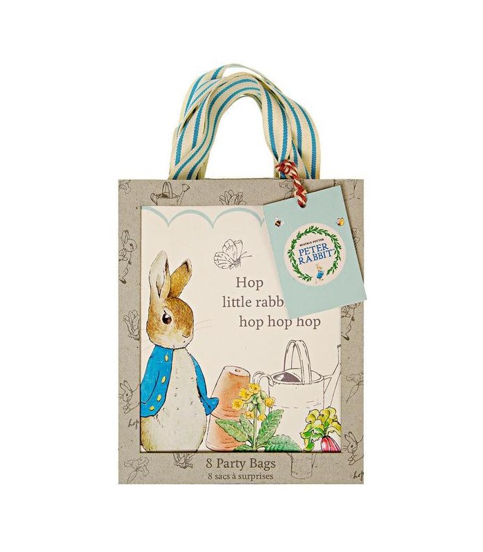 A party bag is always a joy to receive, but your guests will be extra delighted when you present them with these charming ones. Beautifully decorated with Beatrix Potter's Peter Rabbit and the classic words "Hop little rabbit, hop hop hop".