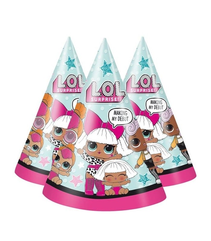 Get ready to share a sweet party time with the popular and adorable LOL Surprise! dolls. Top your party off with these fabulous party hats. Your little guests will look adorable with these on and will make fun souvenir photos!