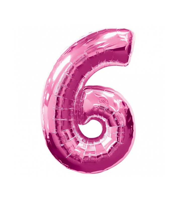 Pink "Super Shape" metallic Mylar balloon that will decorate and indicate with style the number 6!