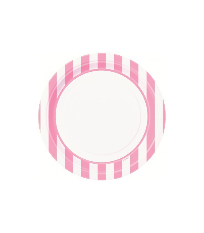 Each package contains 8 paper plates pink stripe. Dimenion: 23cm