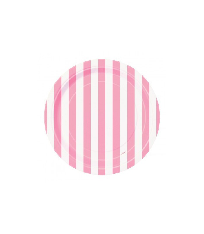 Each package contains 8 stripe pink small paper plates. Dimenion: 18cm