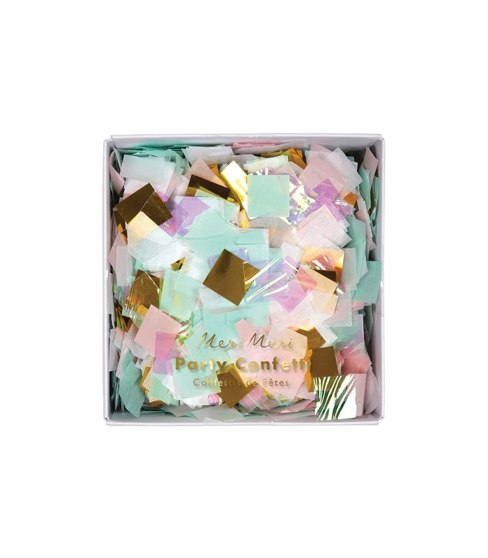 Box of iridescent confetti in gold and pastel colour from Meri Meri.