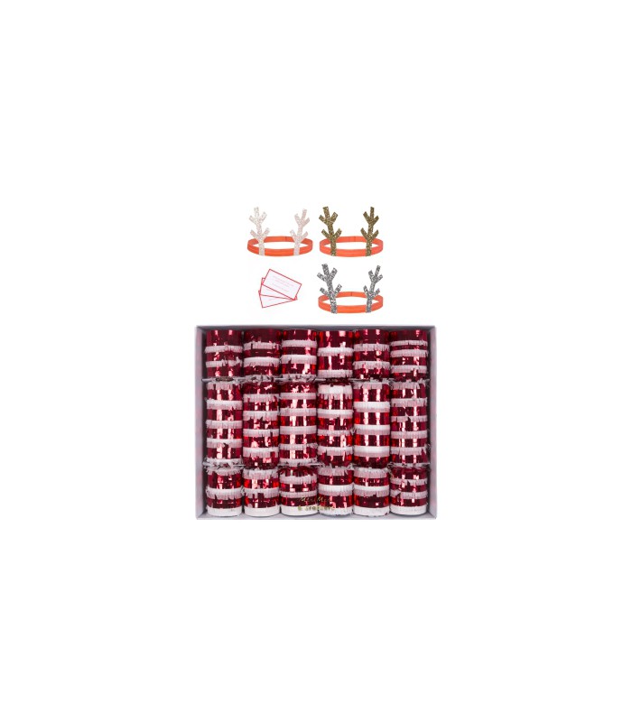 These crackers are just brilliant! Not only do they add a splash of cheerful color and style to the table, but they each include a reindeer antler headband and joke, to make your festivities extra fun.