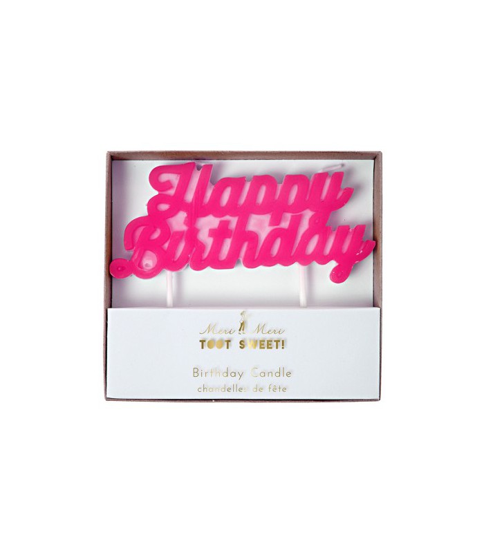 This darling Happy Birthday party candle from Meri Meri is the perfect way to celebrate a birthday! So quick and easy for any birthday celebration. 1 candle with 2 wicks Measures 10cm x 12.5cm