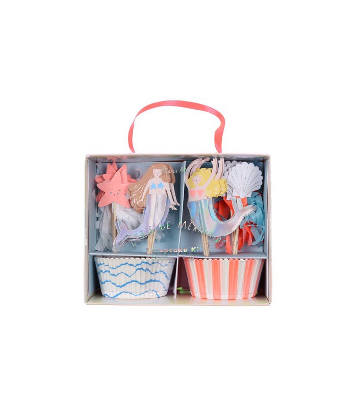Decorate your cucpakes with a mermaid's magical world with this delightful mermaid cupcake kit. With patterned baking cases and toppers including two mermaids with shimmering iridescent foil tails, a starfish and a scallop shell.