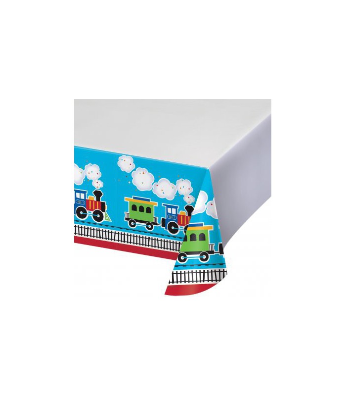 All Aboard plastic table cover. It will decorate your party table into while protecting it from any accidental spills.<P> Size: 137cm x 259cm