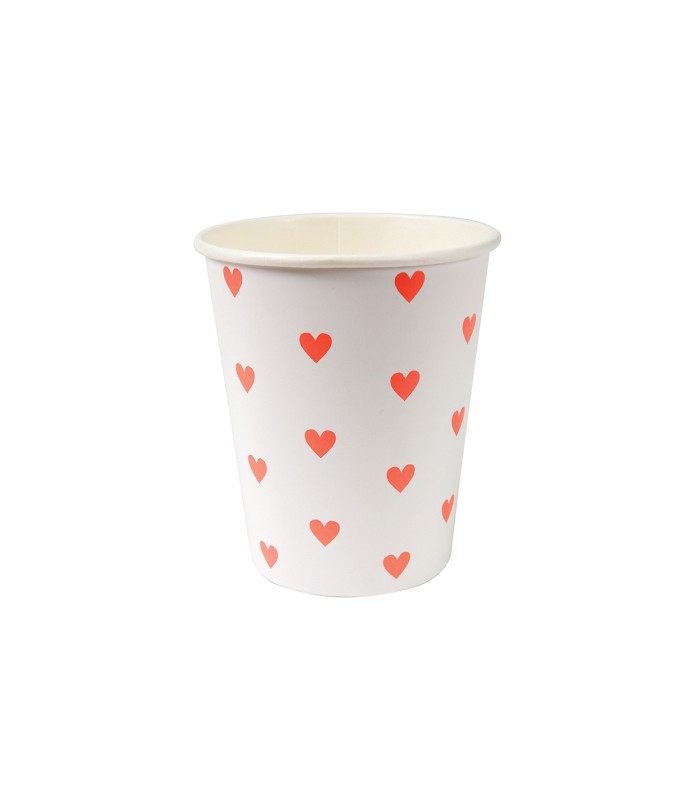 A set of party cups with a delightful pink heart pattern for a party of the most beautiful under the sign of hearts !