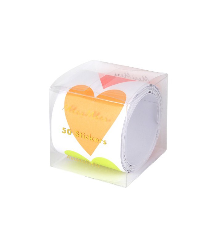 A roll of 50 heart stickers in bright neon colors. Use them to jazz up your invites, gift wrapping or as party favors or even inside pinatas! Meri Meri.