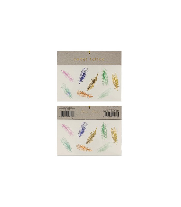 2 temporary tattos from Meri Meri. Cool and design for small and big kids alike! Sticks easily in 30 seconds, lasts a long time and comes off with soap!