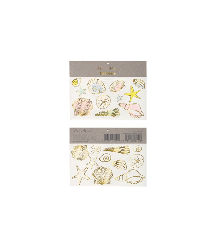 2 temporary tattos from Meri Meri. Cool and design for small and big kids alike! Sticks easily in 30 seconds, lasts a long time and comes off with soap!