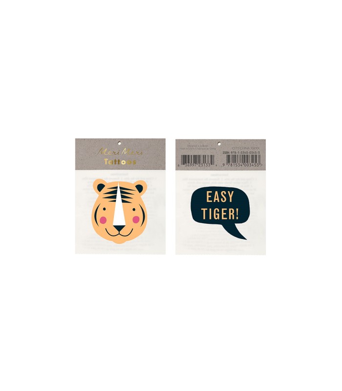 2 temporary tattos from Meri Meri. Cool and design for small and big kids alike! Sticks easily in 30 seconds, lasts a long time and comes off with soap!