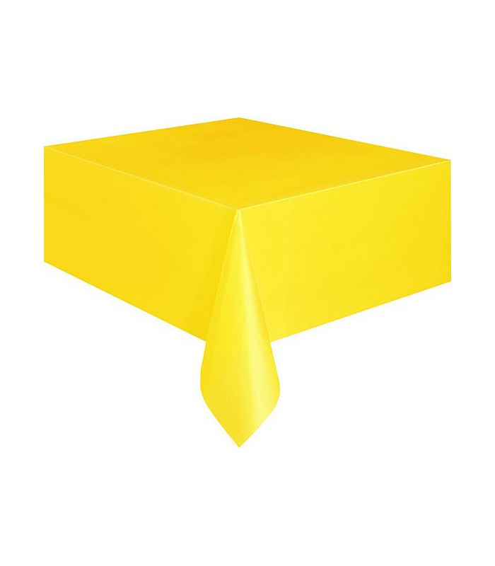 Plastic yellow tablecover. Dimension: 137cm x 274cm