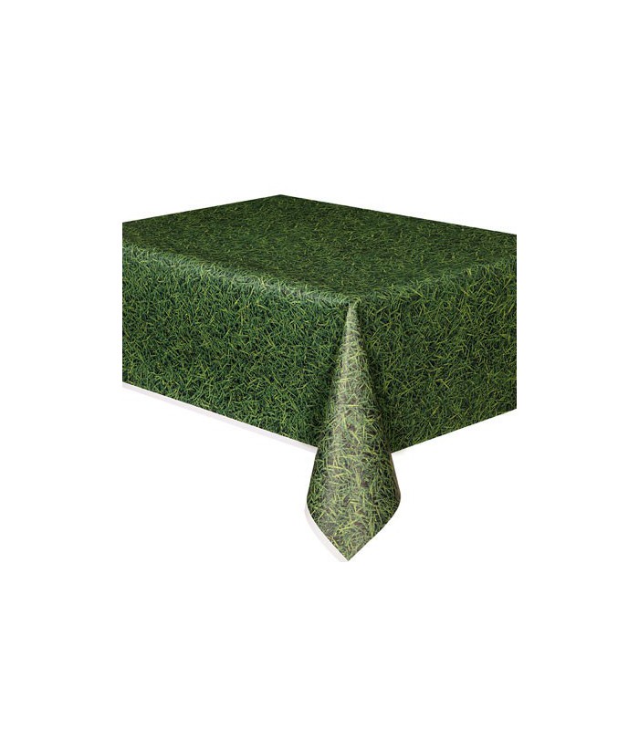 Nappe en plastique avec de multiples teintes de vert pour donner l'illusion d'une pelouse. Idéal pour une fête à l'extérieur sur un thème de sport, ferme ou une garden party! Cette nappe de table en plastique décorera votre table tout en la protégeant.