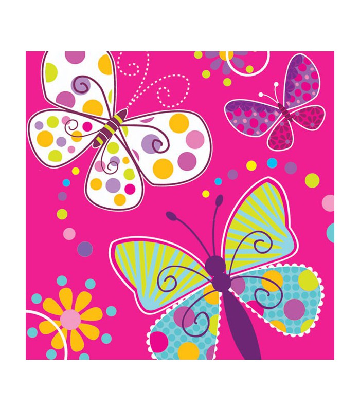 Chaque paquet contient 16 serviettes de notre thème Papillons Dimension: 13cm x 13cm