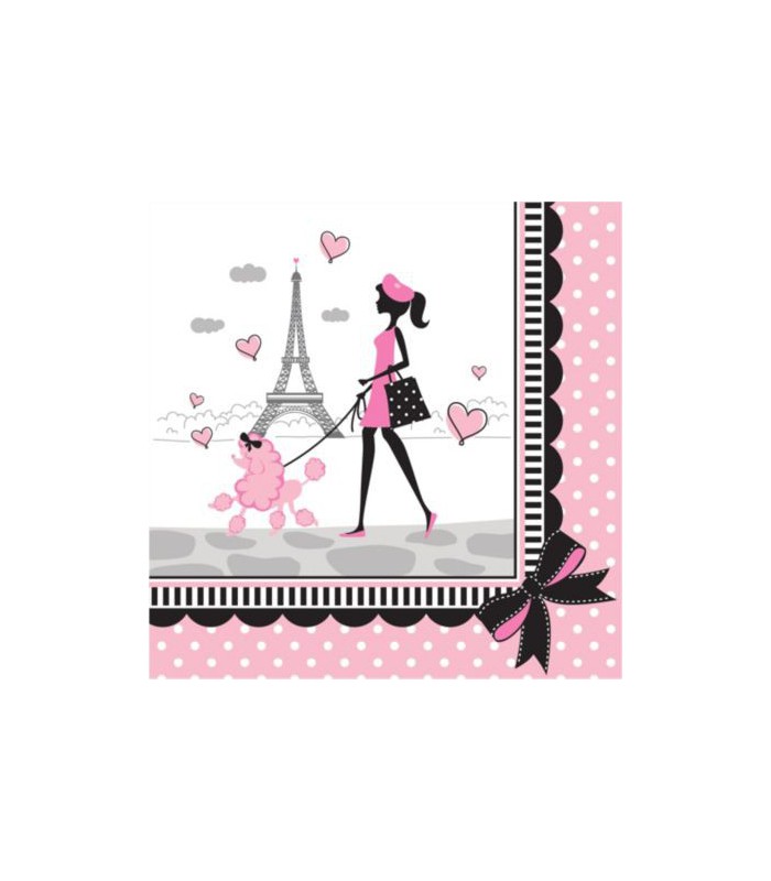 Chaque paquet contient 18 serviettes de notre thème Paris Chic. Dimension : 16.5cm