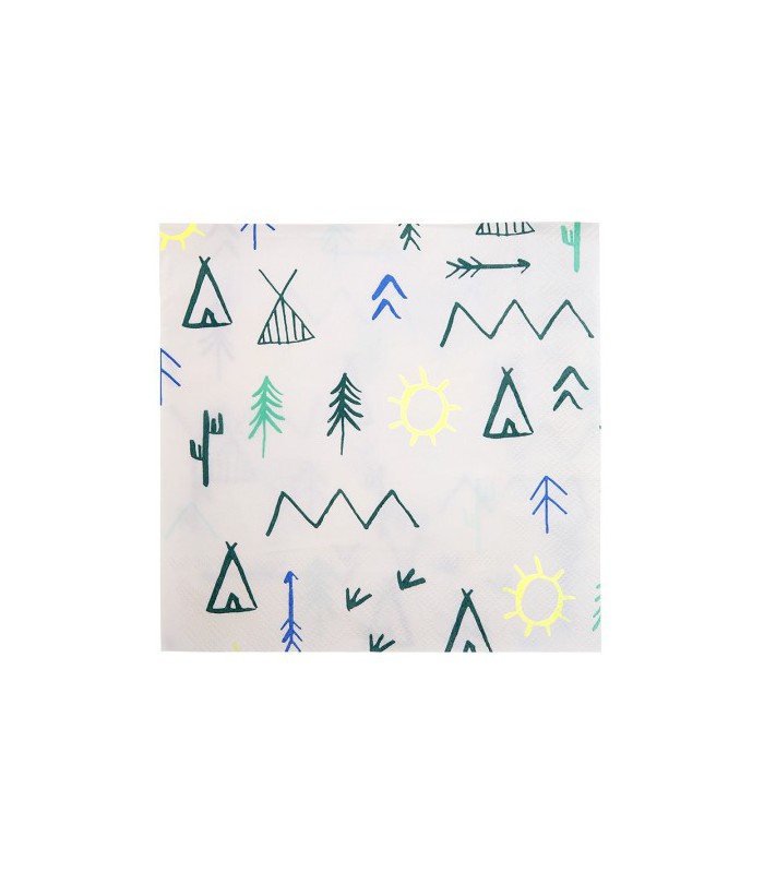 Laissez-vous séduire par les motifs plumes, tipis, montagnes et arbres. Parfaites pour un anniversaire avec une troupe d'aventuriers!