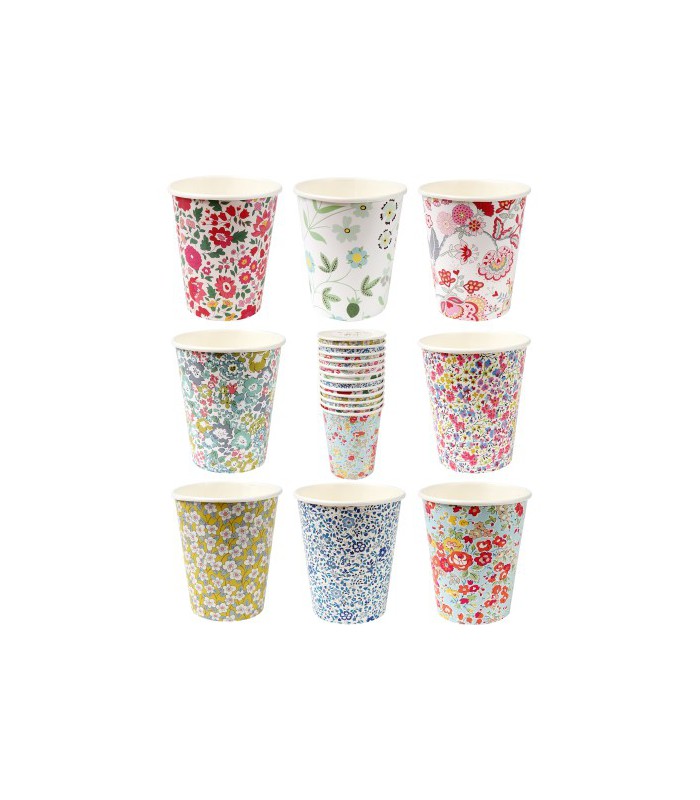 Lot de 12 gobelets liberty. Créé par Meri Meri en collaboration avec la marque anglaise Liberty of London, ces délicats motifs floraux apporteront une touche de fraîcheur à votre fête!