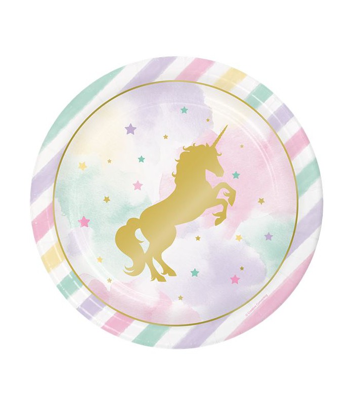 Chaque paquet comprend 8 assiettes de notre jolie thème Licorne Scintillante.