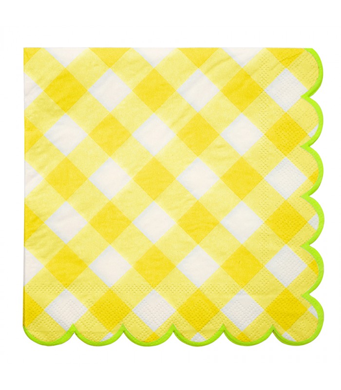 Créez une ambiance de fête classique avec ces belles serviettes lumineuses. Elles comportent un motif de Vichy couleur jaune vif avec un contour vert et finies avec un bord en forme de pétoncles.