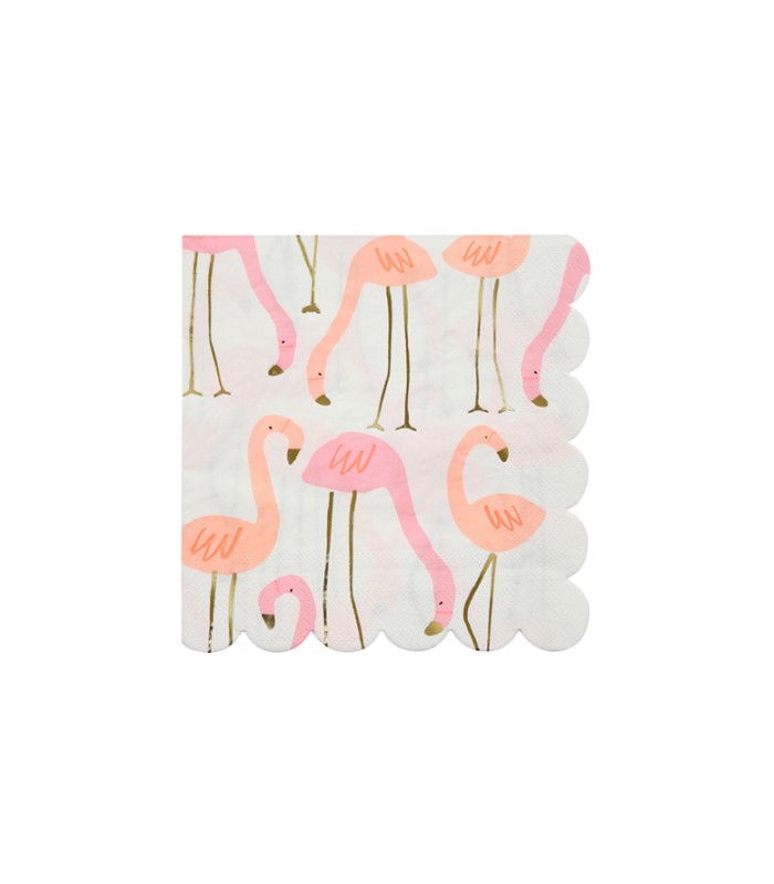Appréciez le soleil tropical avec ces serviettes stylées ! Elles sont décorées d'un motif de flamant rose et orné de papier métallisé or brillant.