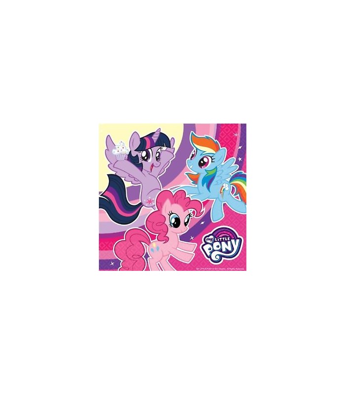 Chaque paquet comprend 16 serviettes à dessert de Mon Petit Poney. Dimension: 13cm x 13cm