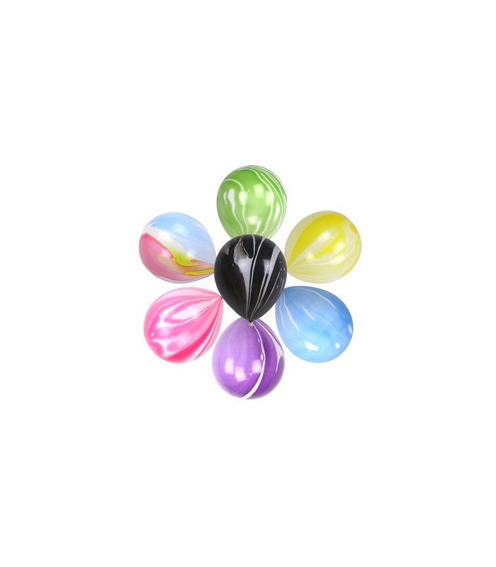 Chaque paquet contient 8 ballons: rose, jaune, arc-en-ciel, noir, violet, vert et 2 bleu
