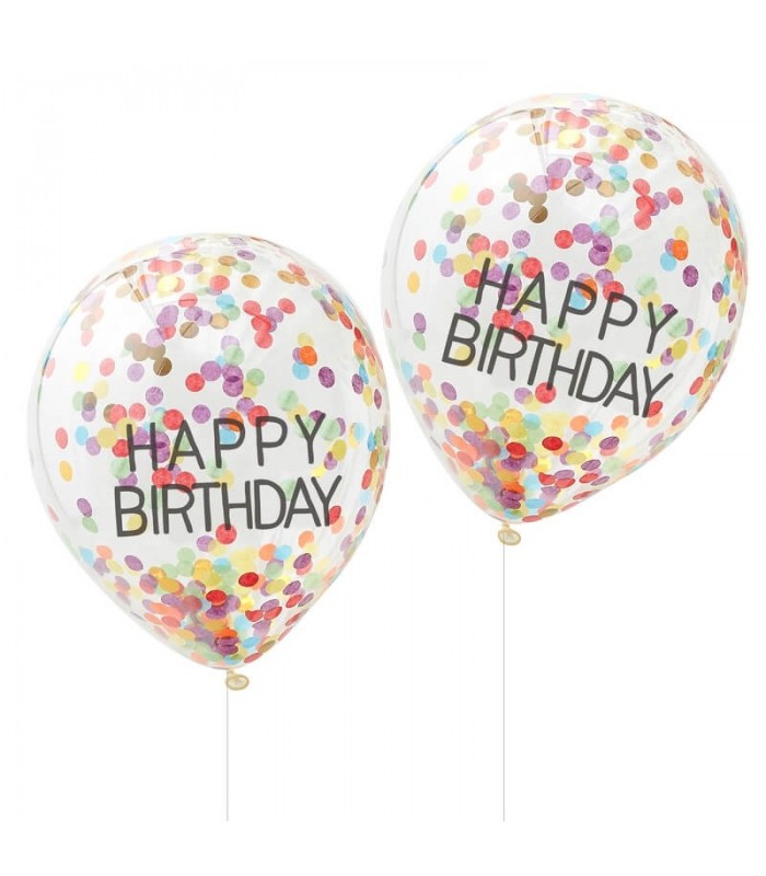 Paquet de 5 ballons de 30cm avec confettis, livrés non gonflés.
