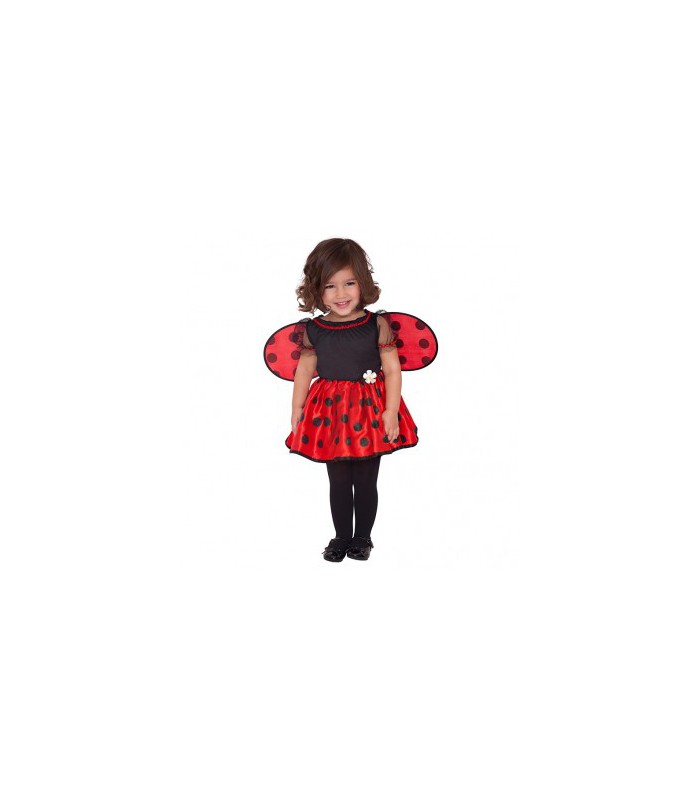 Notre déguisement de coccinelle comprend une robe noire et rouge avec sa jupe à pois en satin, ses manches bouffantes noir transparent, un ornement de petite marguerite et des ailes à pois détachables. Comprend : - Ailes détachables - robe.