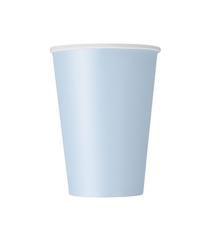 Chaque paquet comprend 14 gobelets en carton de couleur bleu ciel.