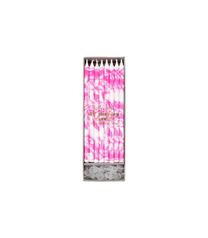 Ajoutez une touche chic à votre gâteau avec ces élégantes bougies marbrées pour une fête scintillante!