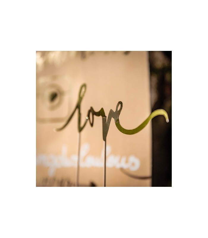 Ce cake topper avec l'inscription dorée "Love" sera parfait pour apporter une touche élégante et tendance à votre gâteau. Love is in the air!
