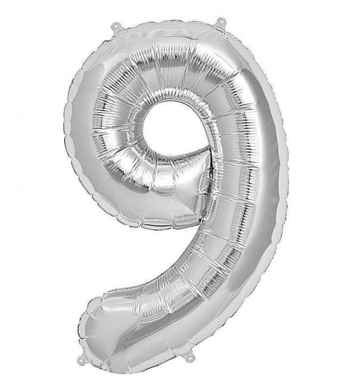 Ballon Mylar "Super Shape" métallisé argenté qui décorera votre salle tout en indiquant avec style le chiffre 9!