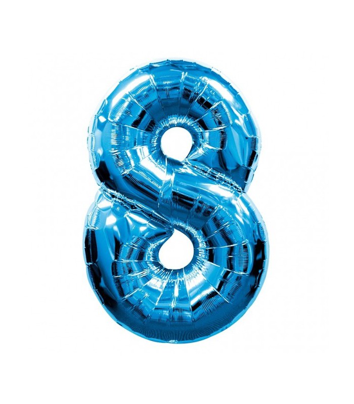 Ballon Mylar "Super Shape" bleu métallisé qui décorera votre salle tout en indiquant avec style le chiffre 8!