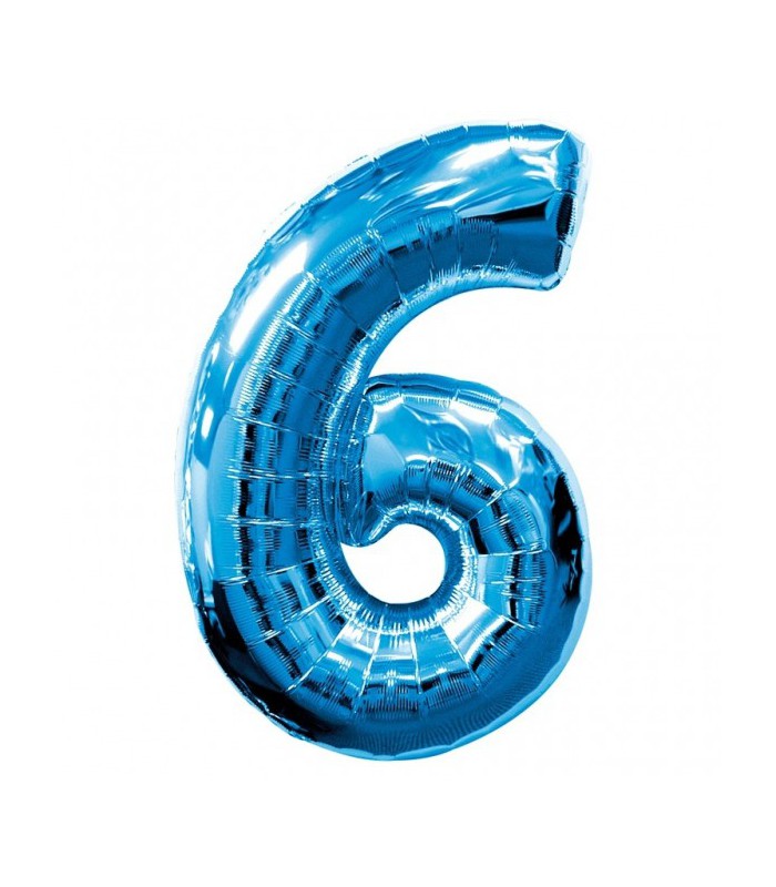 Ballon Mylar "Super Shape" bleu métallisé qui décorera votre salle tout en indiquant avec style le chiffre 6!