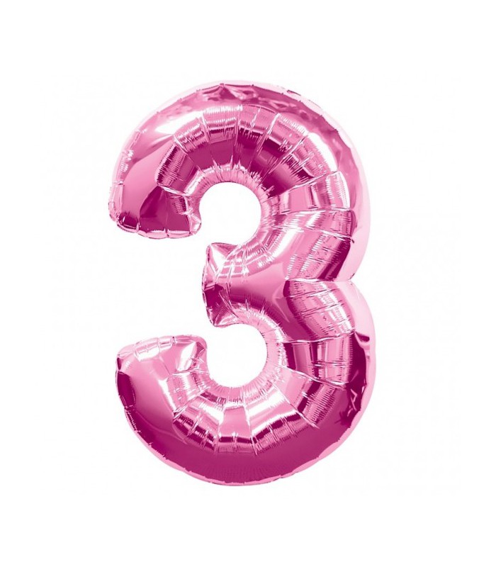 Ballon Mylar "Super Shape" rose métallisé qui décorera votre salle tout en indiquant avec style le chiffre 3!