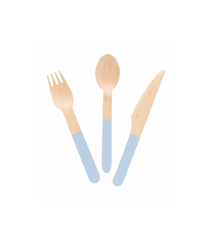 Lot de 24 pièces de couverts en bois de bouleau par Meri Meri. Ces couverts sont parfaits pour décorer un candy-bar ou une jolie sweet table et ajouter une touche rétro et colorée à vos fêtes et gourmandises !