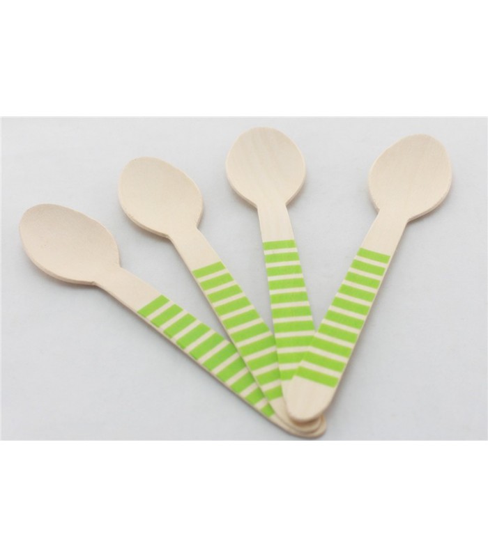 Lot de 12 petites cuillères en bois. Ces cuillères sont idéales pour décorer un candy-bar ou une jolie sweet table et ajouter une touche rétro et colorée à vos fêtes et gourmandises ! Ces cuillères suivent la tendance du moment! Cuillères eco-friendly mesurant 16 cm