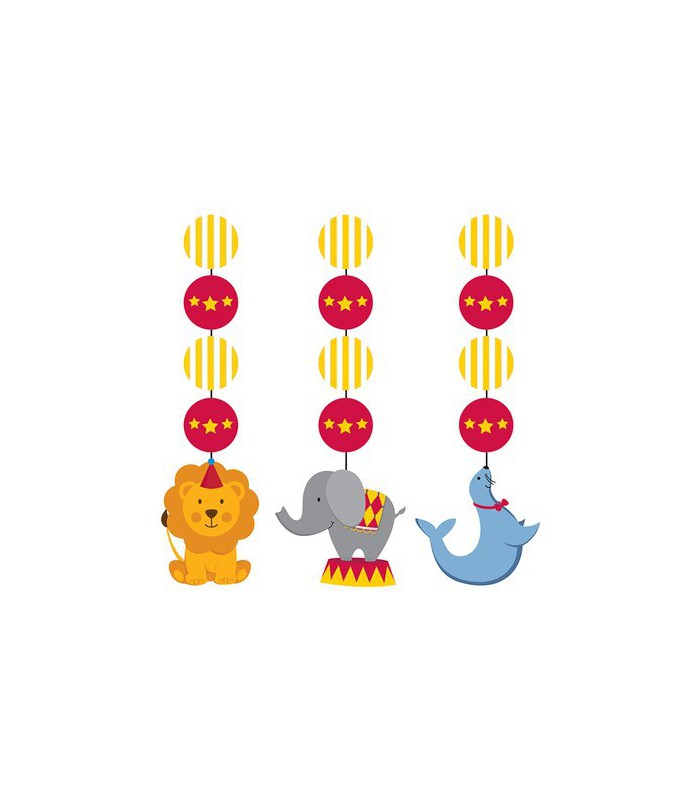 Chaque paquet comprend 3 décorations suspendues Circus Time. Suspendez-les au-dessus de votre table pour des mouvements de tourbillon dans la brise! S'étire jusqu'à 76cm