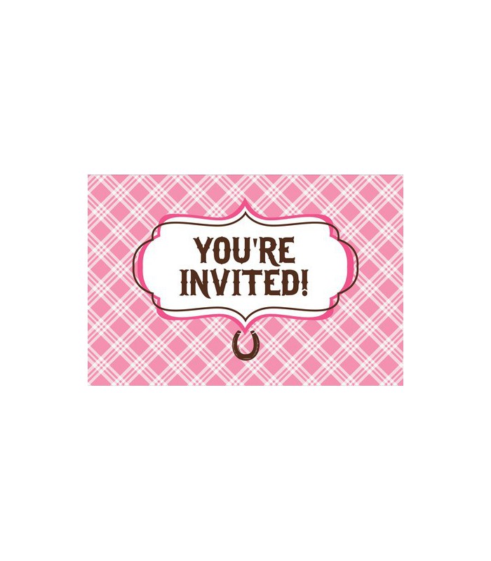 Chaque paquet comprend 8 invitations avec ruban rose et enveloppes de notre thème Mon Cheval.